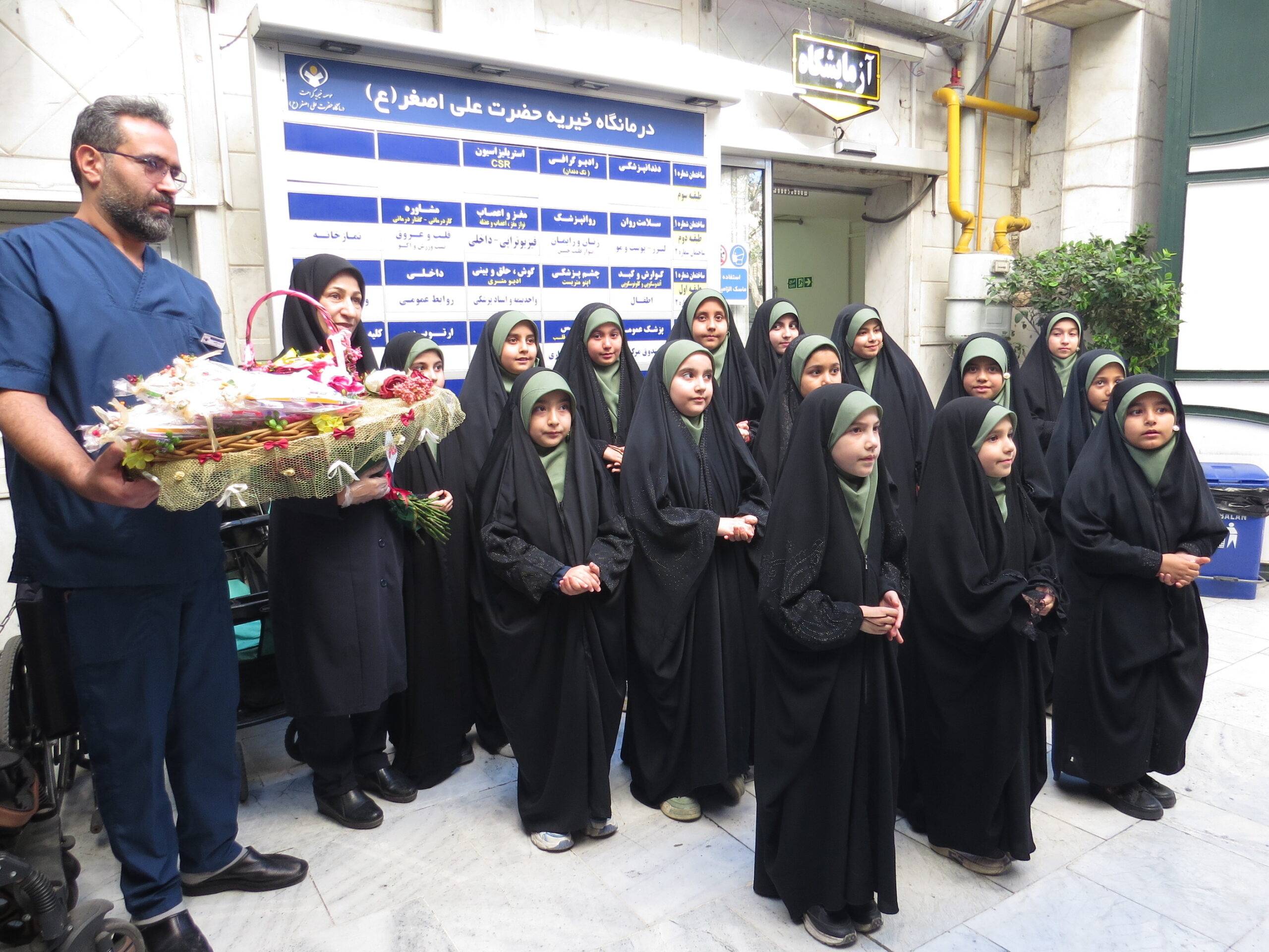 مصادف با سالروز ولادت حضرت زینب کبری (س) مورخ 16 آبان ماه، گروه سرود دختران کرامت در درمانگاه حضرت علی اصغر (ع) حضور یافته و پس از اجرای سرود ، با تقدیم شاخه گلی از ایشان تقدیر نمودند.